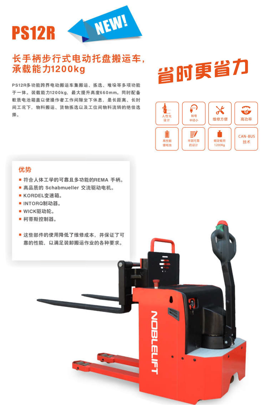 長(zhǎng)手柄步行式電動(dòng)托盤(pán)搬運(yùn)車(chē)